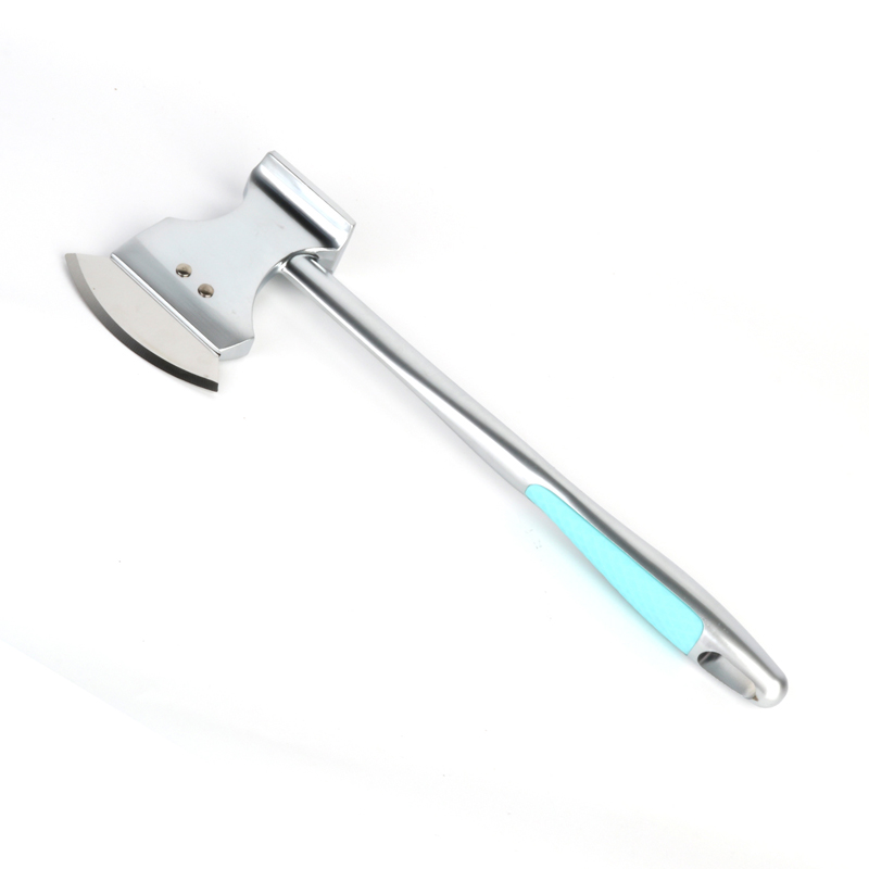 A pizzavágó pengéje kiváló minőségű 304-es rozsdamentes acélból készült, kialakítását a fejsze formája ihlette, így praktikusabb és tetszetősebb megjelenést kölcsönöz neki. A szerszám közepes súlyú, így könnyen használható és sokoldalú a funkciója. Akár húspuhítóként, akár darabolására használják, a penge akár gyümölcsként vagy hús eltávolítására is alkalmas. zöldségek és gyümölcsök aprítása, amikor nincs más kés.