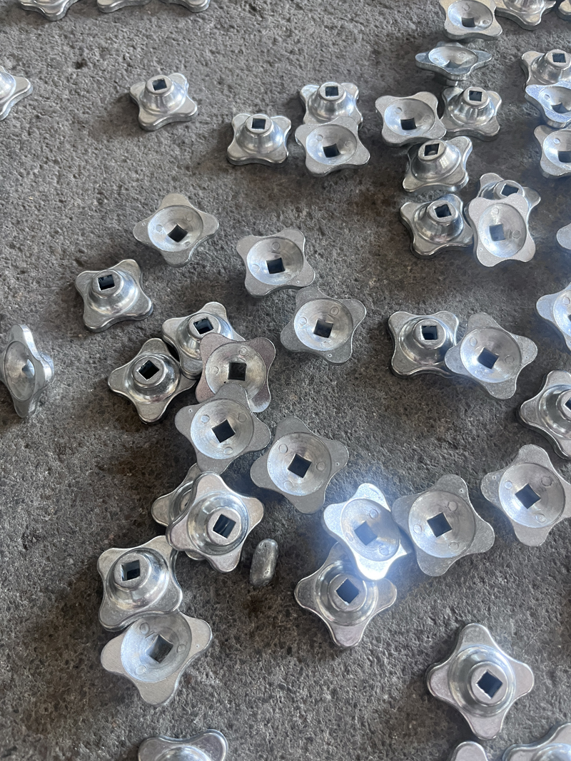 A végső színt speciális galvanizálási technikával érik el, amely jellegzetes „zöld, antik réz” felületet eredményez. Ez a módszer ugyanazokhoz a bevonási eljárásokhoz igazodik, mint a krómozott konyhai eszközöknél, például hámozógépeknél, fokhagymapréseknél és diótörőknél, de egyedi árnyalattal. A szándékos színváltoztatás vizuális sokszínűséget ad, és gazdagítja a termék esztétikus megjelenését.