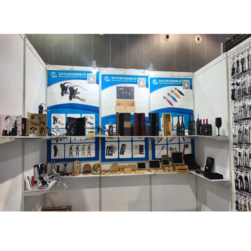 A Jinhua Hanjia Commodity Co., Ltd., amely ugyanabban a közigazgatási régióban található, mint a kiállítás helyszíne, és egy órás autóútra Yiwu Small Commodities City városától, a regionális gazdasági termelési láncban rejlő előnyöket élvezi. Kihasználva Yiwu virágzó nemzetközi e-kereskedelmi üzleti környezetét, cégünk hét terméksorozatot és több száz nemzetközi vállalkozói platformot választott ki, amelyek alkalmasak a hazai kereskedelmi termékekre, valamint a nemzetközi kereskedelmi termékekre. tartalmaznak háztartási és konyhai cikkeket, borkiegészítőket, például rozsdamentes acélból és ötvözetből készült bordugóhúzókat, bordugókat, pezsgőszerszámokat, fokhagymapréseket, diótörőket, konzervnyitókat, hámozót, húspuhítót, koktélrázót, rozsdamentes acél kulacsot, boros dekantereket, fából és poliuretánból készült dobozos boroskészleteket stb.