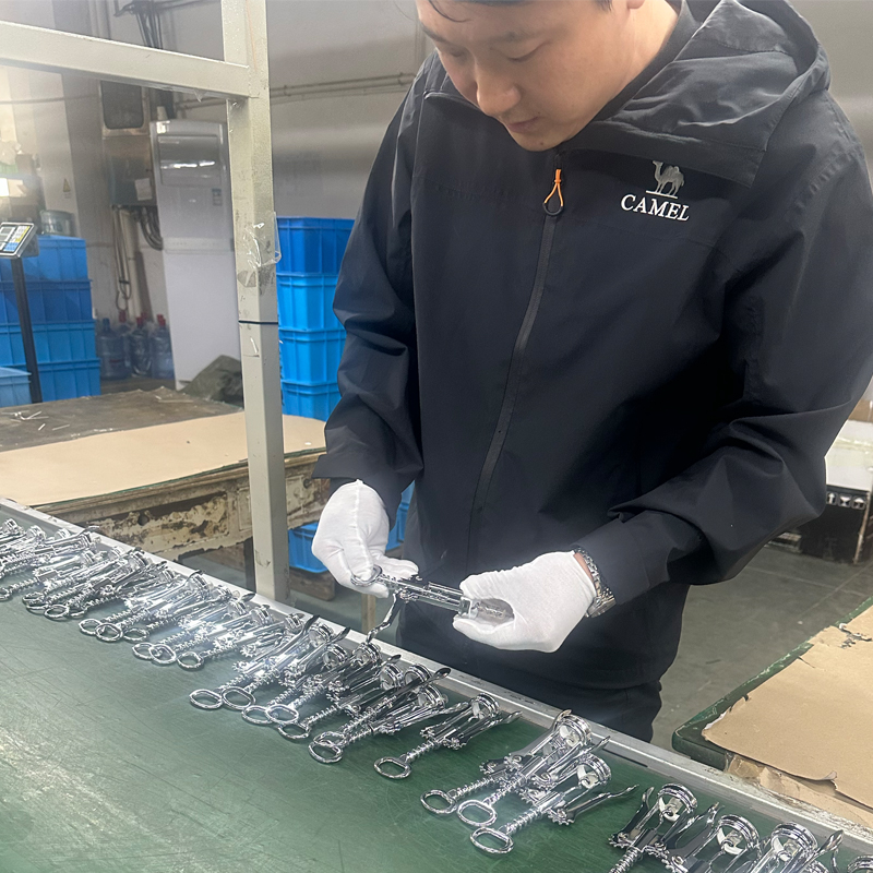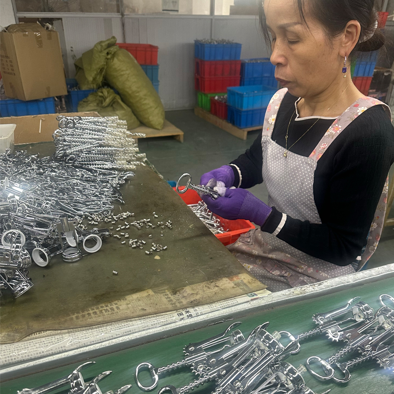 A teljes dugóhúzó elérte a végső folyamatot, ami az összeszerelés. Először is az összes feldolgozott félkész alkatrészt alkatrésztípusok szerint osztályozzuk. A minőségellenőrző (QC) személyzete előzetes ellenőrzéseket végez, hogy megbizonyosodjon arról, hogy ezek a félkész alkatrészek megfelelnek minden termékspecifikációnak a funkcionalitás, a szín és a felület minősége tekintetében. A minősített és hibás alkatrészeket ezután elkülönítik, és a termékosztálynak külön-külön elkészítik, és a Warhouse-nak elkészítik a vizsgálati jelentést. Osztály. A kialakított Termékspecifikációs Kézikönyvet követve a minősített félkész alkatrészeket raktáron tárolják, majd a gyártósorra kerülnek összeszerelésre.