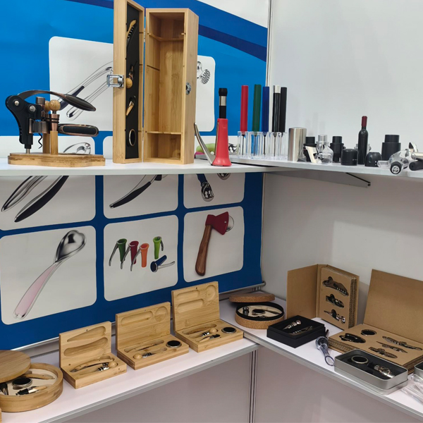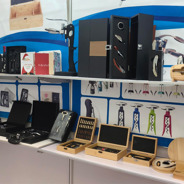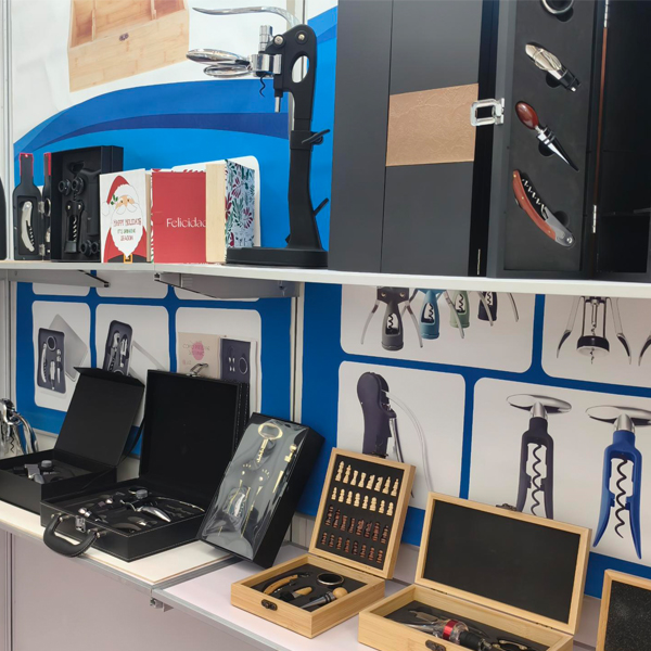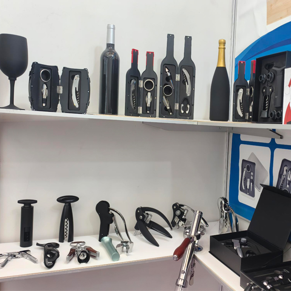 Termékpalettánk sokféle rozsdamentes acélból és ötvözetből készült bornyitót, dugóhúzót, pezsgőszerszámot, fokhagymaprést, diótörőt, konzervnyitót, hámozót, húspuhítót, koktél shakert, rozsdamentes acél csípőt és különféle fából vagy PU-ból készült borkészleteket, valamint borosdobozokat tartalmaz.
