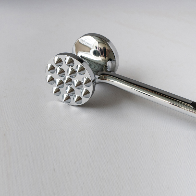Ez a Jinhua Hanjia Commodity Co., Ltd. által gyártott, cinkötvözetből készült húspuhító, amelyet integrált fröccsöntési eljárással gyártanak. A fémfelületet kézzel gondosan polírozzák, és az egész terméket környezetbarát, biztonságos galvanizálási eljárásnak vetik alá. A bevonatot ezután passziválják, hogy olyan kemény legyen, mint az acél. A kényelmes kézi súlyú, 22 cm-es hosszúságú. a húspuhító eleje és háta között az aranymetszés szerint van kialakítva, lehetővé téve a felhasználók számára, hogy minimális erőfeszítéssel ütögessék a húst, kizárólag a kalapácsfej gravitációjára támaszkodva. A húspuhító fej két különböző felülettel rendelkezik a különböző húsfajták számára. A nyél mindkét oldalán található műanyag pufferek kényelmes használatot biztosítanak a hosszan tartó használathoz. A hagyományos modellek összehasonlítása révén a puhítógép össztömege2 és költsége 7 grammra csökken. több mint 13%.Tisztítása is nagyon egyszerű, egyszerűen öblítheti le vízzel vagy mosogatógépben.