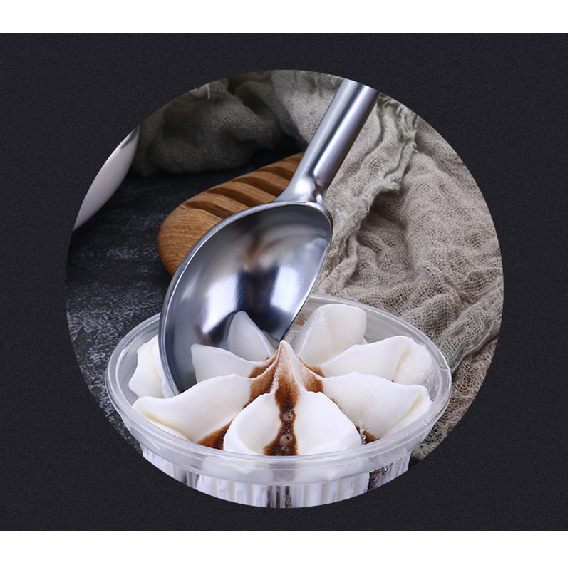 Ez a cinkötvözetből készült fagylaltkanál kényelmes markolattal, prémium minőségű cinkötvözetből varrat nélküli fröccsöntéssel készült. A gombóc simán kontúrozott élekkel rendelkezik, éles sarkok nélkül, így kényelmes, lekerekített fogást biztosít. A 16,5 cm-es gyártási hossz ellenére a gombóc súlya mindössze 75-6 gramm. magas hőmérsékleten (120°C) sütött felülettel van bevonva, ami tartós, de pehelykönnyű szerkezetet hoz létre.A gombóc feje nyitott csónak formát ölt, egyedi tervezésű, 108 fokos kifelé dőlt hegyével, amely könnyedén átszeli a fagyott fagylaltot. A kanál mindkét oldalán lehetővé teszi a gombóc felületének kinyújtását, amely alacsonyabbra nyújtja a fő vonalat, mint a hajlított vonal. zökkenőmentes fagylalt kibocsátás. Ez az átgondolt kialakítás könnyed használatot biztosít bárki számára, tudásszinttől függetlenül.